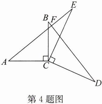 4. 如图,$AC\perp BC$,$DC\perp EC$,$AC =  BC$,$DC =  EC$,$AE与BD交于点F$。