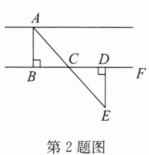 2. 如图,要测量河两岸相对的$A$,$B$两点之间的距离,可以在与$AB垂直的河岸BF上取C$,$D$两点,且使$BC =  CD$。从点$D出发沿与河岸BF垂直的方向移动到点E$,使点$A$,$C$,$E$在一条直线上。若测量$DE$的长为15米,则$A$,$B$两点之间的距离为