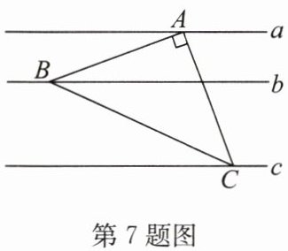 7. 如图,在$\triangle ABC$中,$\angle BAC =  90^{\circ}$,$AB =  AC$,三角形的顶点分别在相互平行的三条直线$a$,$b$,$c$上,且$a$,$b$之间的距离为2,$b$,$c$之间的距离为4,则$\triangle ABC$的面积为