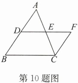 10. (2024·宿豫期中)如图,在$\triangle ABC$中,点$D在AB$上,$E是AC$的中点,$CF// AB$,交$DE的延长线于点F$。