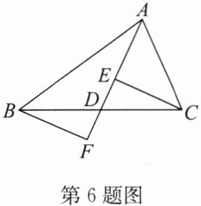 6. 如图,$AD是\triangle ABC$的中线,$E$,$F分别是AD和AD$延长线上的点,且$DE =  DF$,连接$BF$,$CE$。给出下列说法:①$CE =  BF$;②$\triangle ABD和\triangle ADC$的面积相等;③$BF// CE$;④$AE + AF =  2AD$。其中,正确的个数是(