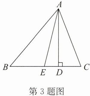 3. (2024·南京建邺区期中)如图,在 $ \triangle ABC $ 中,$ AD $ 是 $ BC $ 边上的高,$ AE $ 是 $ BC $ 边上的中线. 若 $ AD = 6 $,$ S_{\triangle ABC} = 24 $,则 $ BE $ 的长为