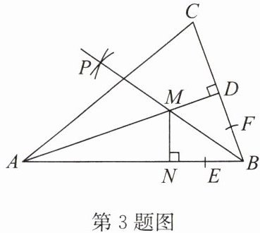 3. (2024·湖南)如图,在锐角三角形 ABC 中,AD 是边 BC 上的高,在 BA,BC 上分别截取线段 BE,BF,使 BE = BF;分别以点 E,F 为圆心,大于 $\frac{1}{2}EF$ 的长为半径画弧,在∠ABC 内,两弧交于点 P,作射线 BP,交 AD 于点 M,过点 M 作 MN⊥AB 于点 N. 若 MN = 2,AD = 4MD,则 AM =
