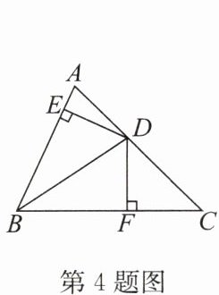 4. 如图,BD 是∠ABC 的平分线,交 AC 于点 D,DE⊥AB 于点 E,DF⊥BC 于点 F,$S_{△ABC}$ = 36 $cm^{2}$,AB = 8 cm,BC = 10 cm,则 DE 的长为