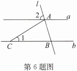 6. 如图,直线$a// b$,直线$l与直线a$,$b分别相交于点A$,$B$,点$C在直线b$上,且$CA =  CB$。若$\angle 1 =  32^{\circ}$,则$\angle 2$的度数为(