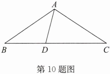 10. 如图,在$\triangle ABC$中,$AB =  AC$,点$D在BC$边上,且$AD =  BD$。求证:$\angle ADB =  \angle BAC$。