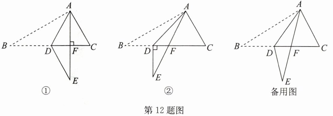 12. 在$\triangle ABC$中,$\angle BAC =  90^{\circ}$,$D是BC$边上一点,将$\triangle ABD沿AD翻折后得到\triangle AED$,边$AE交射线BC于点F$。
