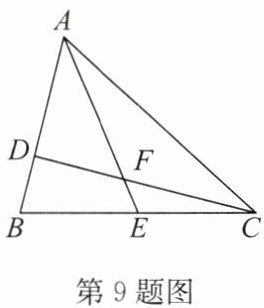 9. (2024·宿城期中)如图,$ D $,$ E $ 分别是 $ \triangle ABC $ 的边 $ AB $、$ BC $ 上的点,$ AD =  2BD $,$ BE =  CE $,设 $ \triangle ADF $ 的面积为 $ S_1 $,$ \triangle CEF $ 的面积为 $ S_2 $. 若 $ S_{\triangle ABC} =  12 $,则 $ S_1 - S_2 $ 的值为______.