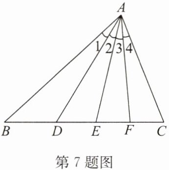 7. 如图,在 $ \triangle ABC $ 中,$ \angle 1 =  \angle 2 =  \angle 3 =  \angle 4 $. 下列说法中,正确的是(