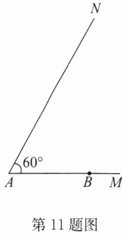 11. (2024·苏州常熟期末)如图,∠MAN = 60°,若△ABC 的顶点 B 在射线 AM 上,且 AB = 2,动点 C 从点 A 出发,以每秒 1 个单位长度的速度沿射线 AN 运动. 当运动时间 t 是