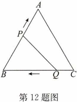 12. (2025·吴江区期末)如图,△ABC 是边长为 10 cm 的等边三角形,动点 P 从点 B 出发以 3 cm/s 的速度沿着路线 B→A→C→B 向终点 B 运动,同时动点 Q 从点 C 出发以 2 cm/s 的速度沿着路线 C→B→A→C 向终点 C 运动,设运动的时间为 t s.