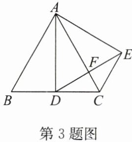 3. (2024·盐城滨海期末)如图,在等边 $\triangle ABC$ 和等边 $\triangle ADE$ 中,$AD$ 是 $BC$ 边上的中线,$DE$ 交 $AC$ 于点 $F$。求证:(1)$AC \perp DE$;(2)$CD =  CE$。