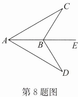 8. 如图,点B在AE上,BC= BD,∠CBE= ∠DBE.若∠CAD= 60°,则∠CAE=