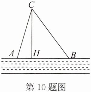 10. 如图,在笔直的河流一侧有一旅游地$C$,河边有两个景点$A$,$B$,其中$AB =  AC$,因$C到A$的路不通,为方便游客,决定在河边修建一个景点$H$($A$,$H$,$B$三点在同一直线上),并修建一条路$CH$,测得$BC =  10$千米,$CH =  8$千米,$BH =  6$千米.