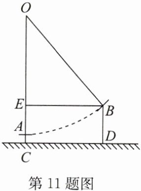 11. 如图,秋千$OA$静止的时候,踏板离地高一尺($AC =  1$尺),将它往前推进十尺($EB =  10$尺),此时踏板升高,离地五尺($BD =  5$尺).求秋千绳索$OB$的长度.