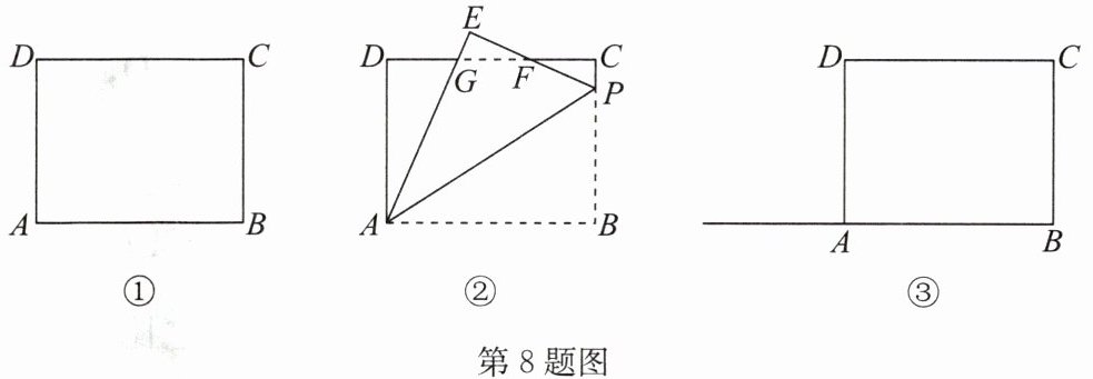 (1)$P为BC$边上一点,将$\triangle ABP沿直线AP翻折至\triangle AEP$的位置.(点$B落在点E$处)
