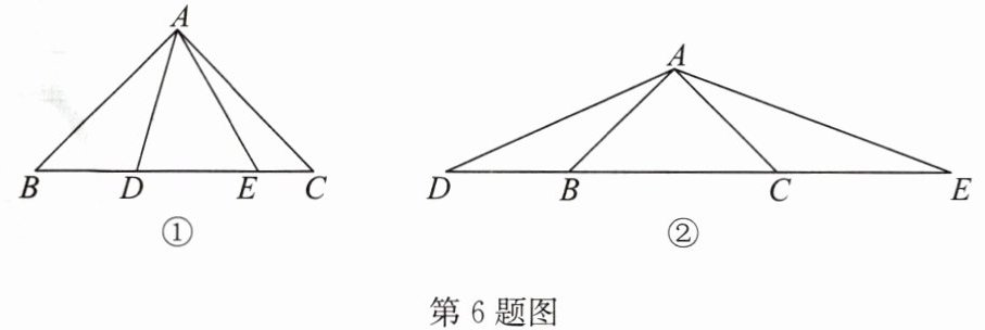 6. 在 $\triangle ABC$ 中,$\angle BAC =  90^{\circ}$,$AB =  AC$。点 $D$,$E$ 在直线 $BC$ 上.