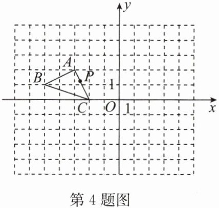 4. 如图,有三个点$A(-3,2)$,$B(-5,1)$,$C(-2,0)$,$P(a,b)是\triangle ABC的边AC$上一点,$\triangle ABC经过平移后得到\triangle A_{1}B_{1}C_{1}$,点$P的对应点为P_{1}(a + 5,b + 2)$.