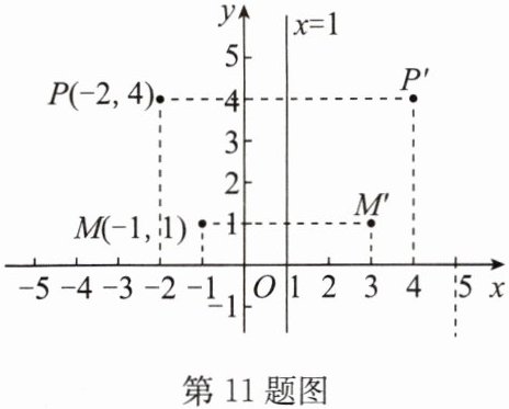 11. 如图,已知点$P(-2,4)和M(-1,1)$,点$P$,$M关于直线x =  1的对称点为P'$,$M'$.