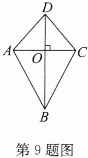 9. 如图,在四边形ABCD中,DB平分$\angle ADC$,$AC\perp BD$,垂足为O.有下列结论:①$AD= CD$;②$AB= CB$;③$AB// CD$;④图中有3对全等三角形.其中正确结论的序号是