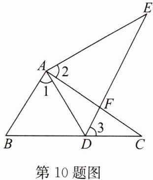 10. 如图,点E在$\triangle ABC$的外部,点D在边BC上,DE交AC于点F,且$\angle 1= \angle 2= \angle 3$,$AE= AC$.求证:$BC= DE$.