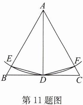 11. 如图,AD是$\triangle ABC$的角平分线,以点A为圆心,AD长为半径画弧,与AB,AC分别交于点E,F,连接DE,DF,且$\angle BDE= \angle CDF$.求证:$BD= CD$.