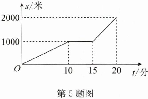 5. 某天小明骑自行车上学,途中因自行车发生故障,修车耽误了一段时间后继续骑行,按时赶到了学校. 如图是小明从家到学校这一过程中离家的距离 $ s $(米)与时间 $ t $(分)之间的关系.