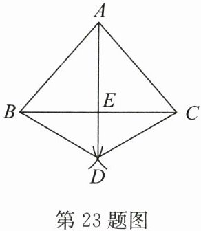 23. (10分)(2024·苏州改编)如图,在$\triangle ABC$中,$AB =  AC$,分别以点$B$,$C$为圆心,大于$\frac{1}{2}BC$长为半径画弧,两弧交于点$D$,连接$BD$,$CD$,$AD$,$AD与BC交于点E$.