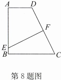 8. 如图,在四边形ABCD中,AD//BC,∠A= 90°,AB= BC= 2AD= 4,边CD的垂直平分线分别交AB,CD于点E,F,则AE的长为(