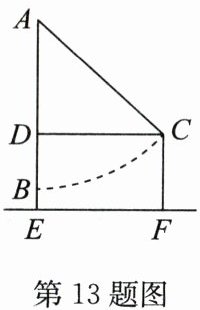 13. 如图,秋千静止时,踏板离地的垂直高度BE= 1 m,将它往前推至C处时,水平距离CD= 6 m,踏板离地的垂直高度CF= 4 m,它的绳索始终拉直,则AC的长是