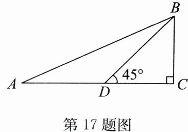 17. (6分)如图,在Rt△ABC中,∠C= 90°,D是AC上一点,∠BDC= 45°,AB= 13,BC= 5,求AD的长.