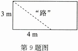 9. 如图,学校内有一块长方形花圃,极少数人为了避开拐角而走“捷径”,在花圃内走出了一条“路”,其实他们仅仅少走了