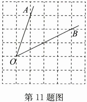 11. 在如图所示的网格中,小正方形的边长均为1,点A,B,O都在格点上,则∠AOB的度数为