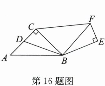 16. (2024·盐城)如图,在△ABC中,∠ACB= 90°,AC= BC= 2$\sqrt{2}$,D是AC的中点,连接BD,将△BCD绕点B旋转,得到△BEF,连接CF. 当CF//AB时,CF=