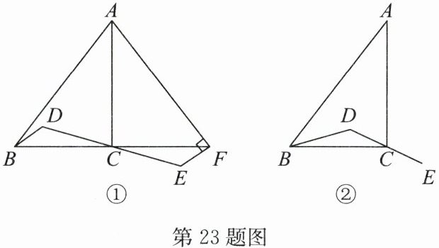 23. (12分)在△ABC中,∠ACB= 90°,D为△ABC内一点,连接BD,DC,延长DC到点E,使得CE= DC.