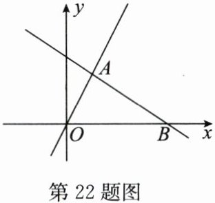 22. (8分)如图,已知一次函数$ y =  k x + b 的图象过点 ( - 2, 4 ) $,与正比例函数$ y =  2 x 的图象交于点 A ( 1, a ) $.