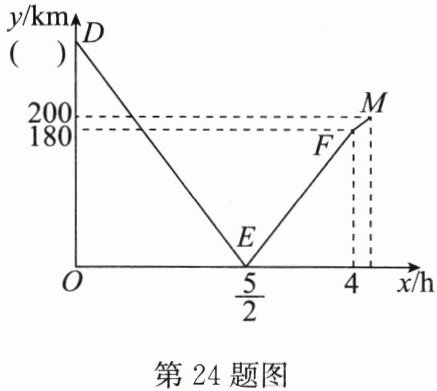 (2)解:由题图可知点E,F的坐标分别为($\frac{5}{2}$,0),(4,180).设线段EF所在直线的函数表达式为y=kx+b,则$\begin{cases}\frac{5}{2}k + b = 0 \\ 4k + b = 180 \end{cases}$,解得$\begin{cases}k = 120 \\ b = -300 \end{cases}$,