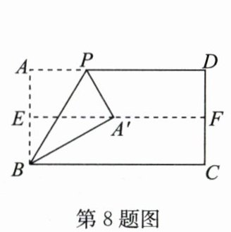 8. 如图,将长方形纸片$ABCD$对折,折痕为$EF$,展开后再折叠,使点$A落在折痕EF上的点A'$处,则$\angle PA'F$的度数为______.