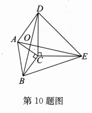 10. 如图,$\triangle ABC和\triangle DCE$都是等腰直角三角形.若$\angle ACB= \angle DCE =  90^{\circ}$,$AC =  2$,$CE =  3$,则$AD^2 + BE^2=$