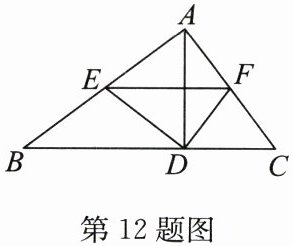 12. (15分)如图,在$\triangle ABC$中,$AD$是高,$E,F分别是AB,AC$的中点,$AB =  8,AC =  6$.