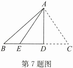 7. 如图,将三角形纸片 $ABC$ 沿 $AD$ 折叠,使点 $C$ 落在 $BD$ 边上的点 $E$ 处.若 $BC =  8$,$BE =  2$,则 $AB^{2}-AC^{2}$ 的值为
