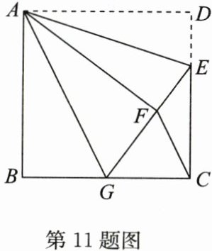 11. (15 分)如图,在正方形$ABCD$中,$AB =  6$,点$E在边CD$上,且$CD =  3DE$,将$\triangle ADE沿AE对折至\triangle AFE$,延长$EF交边BC于点G$,连接$AG,CF$.
