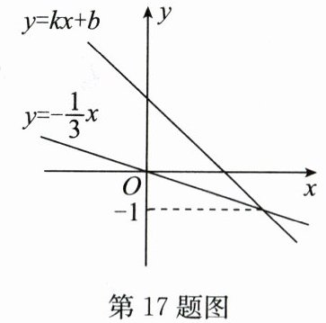 17. 在平面直角坐标系中,一次函数$y= kx+b(k\neq 0,k,b$均为常数)与正比例函数$y= -\frac{1}{3}x$的图象如图所示,则关于$x的不等式kx+b>-\frac{1}{3}x$的解集为
