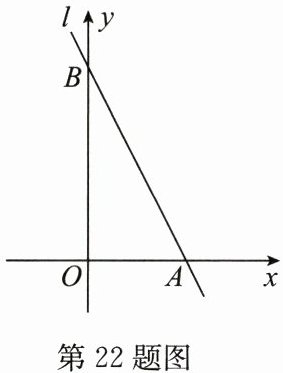 22. (8 分)如图,直线$l是一次函数y =  kx + 4$的图象,且直线$l经过点(1,2)$。