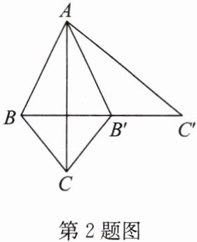 2. 如图,将$\triangle ABC沿AC所在的直线翻折得到\triangle AB'C$,再将$\triangle AB'C沿AB'所在的直线翻折得到\triangle AB'C'$. 若点$B$,$B'$,$C'$在同一条直线上,$\angle BAC= \alpha$. 有下列结论:①$\triangle AB'C'\cong\triangle ABC$;②$BB'\perp AC$;③$\angle CB'B =  2\alpha$. 其中,正确的说法是