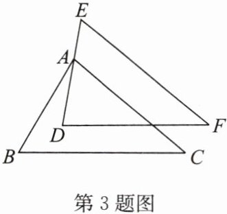3. 如图,已知$\triangle ABC\cong\triangle DEF$,$DF// BC$,且$\angle B =  60^{\circ}$,$\angle F =  40^{\circ}$,点$A在DE$上,求$\angle BAD$的度数.