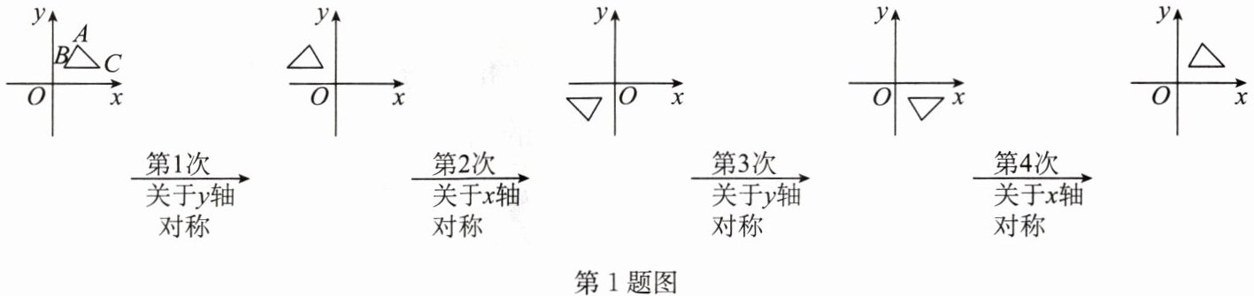 1. 如图, 在平面直角坐标系中, 对$\triangle ABC$进行循环往复的轴对称变换. 若原来点$A的坐标是(1,2)$, 则经过第 2023 次变换后, 点$A$的对应点的坐标为(