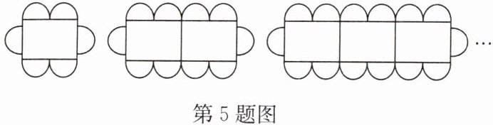 5. 按如图所示的方式摆放餐桌和椅子,用$x$表示餐桌的张数,用$y$表示可坐人数.