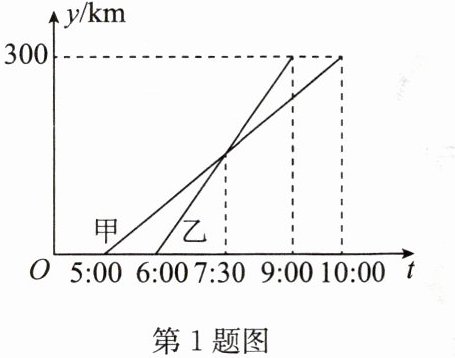 1. 甲、乙两车从A城出发前往B城,在整个行程中,汽车离开A城的距离y(km)与时刻t的对应关系如图所示,则下列结论错误的是 (