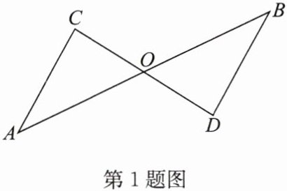 1. 如图,$O是AB$的中点,$\angle A= \angle B$. 求证:$\triangle AOC\cong \triangle BOD$.